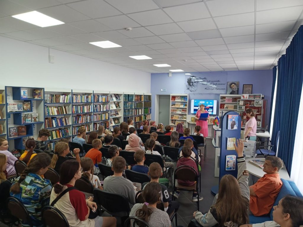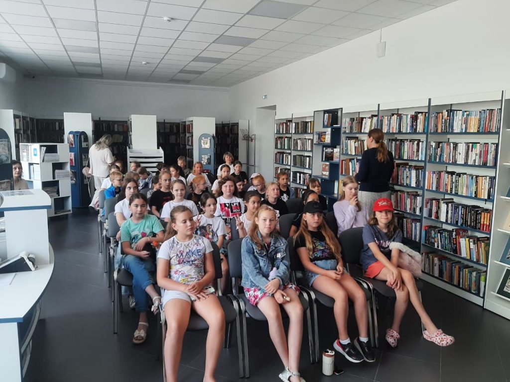 После утренней зарядки и зажигательного, танцевального флешмоба, ребята посетили библиотеку им. Короленко, где им рассказали о «Забавах на Руси». Ребята узнали много интересного и приняли участие в весёлых викторинах. Забавно было узнать о том какие разновидности камней и минералов бывают на нашей планете. Ребятам представилась уникальная возможность подробнее рассмотреть и потрогать своими руками множество различных твёрдых минералов: кварц, алмаз, турмалин и множество других. Учащиеся получали развернутые ответы на интересующие их вопросы. А в завершении встречи, была проведена игра на тему «Безопасное лето».