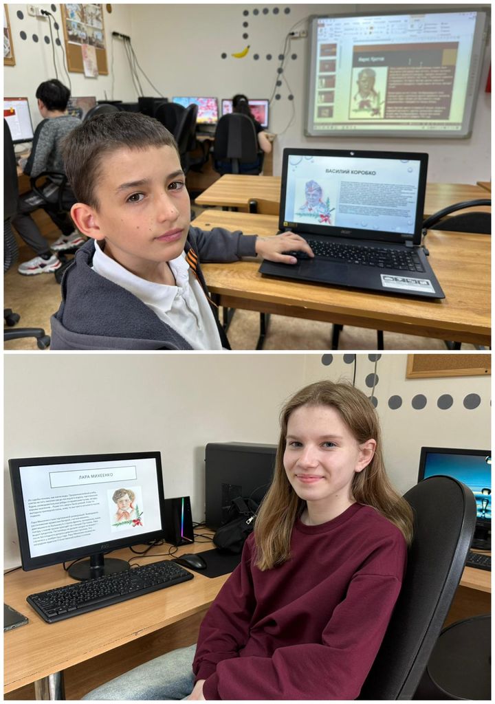 Педагог дополнительного образования Оксана Анатольевна Болдырева провела тематическое занятие с учащимися объединения «Компьютерная азбука», посвящённое юным героям Великой Отечественной войны.