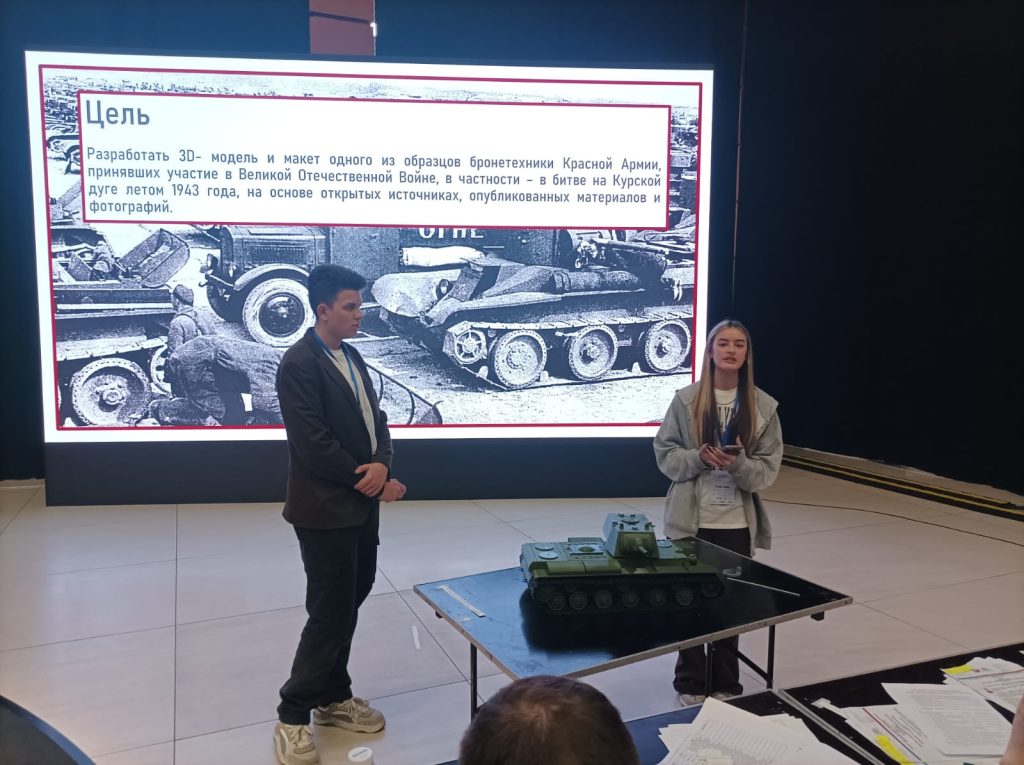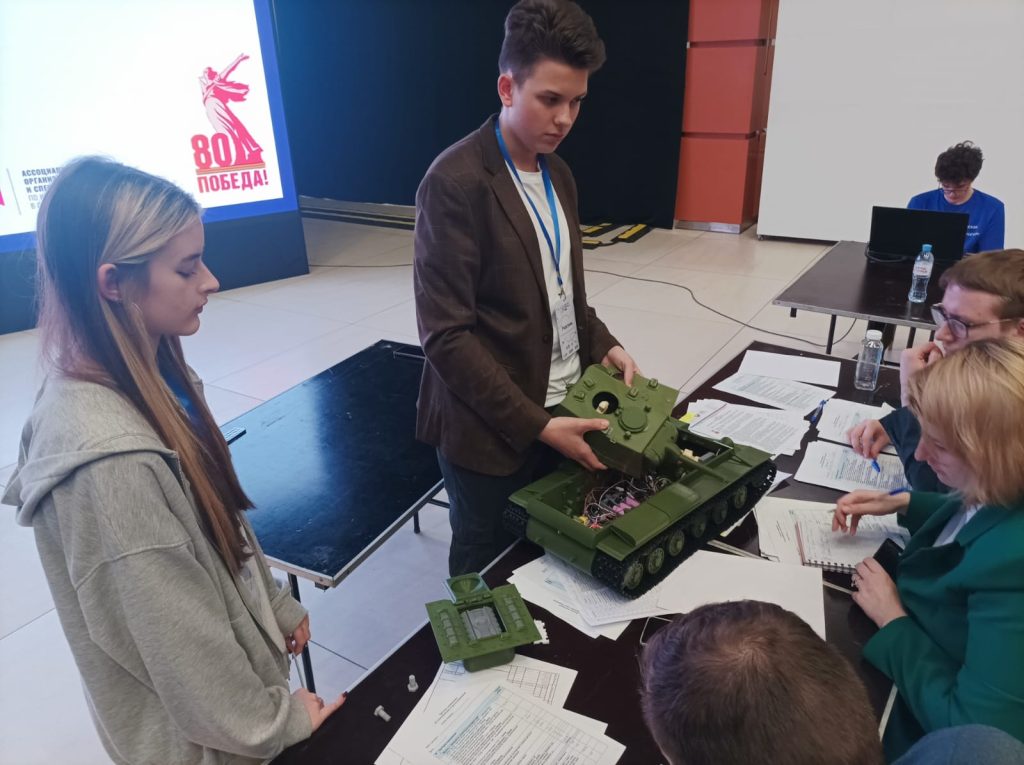 5-6 класс — Маментьева Кира и Кузякина Стефания, команда 7-8 класс — Терентьев Степан и Евдокименко Иван, и Команда 9-11 класс – Ушакова Арина и Зайцев Олег. Ребята месяц выполняли домашнее задание! Олимпиада посвящена 80-летию победы над фашистской Германией в Великой Отечественной Войне. Старшие команды делали Танк, средние – самолёт и младшие — Эсминец. Защита прошла тяжело, успешно, теперь ждём результатов!